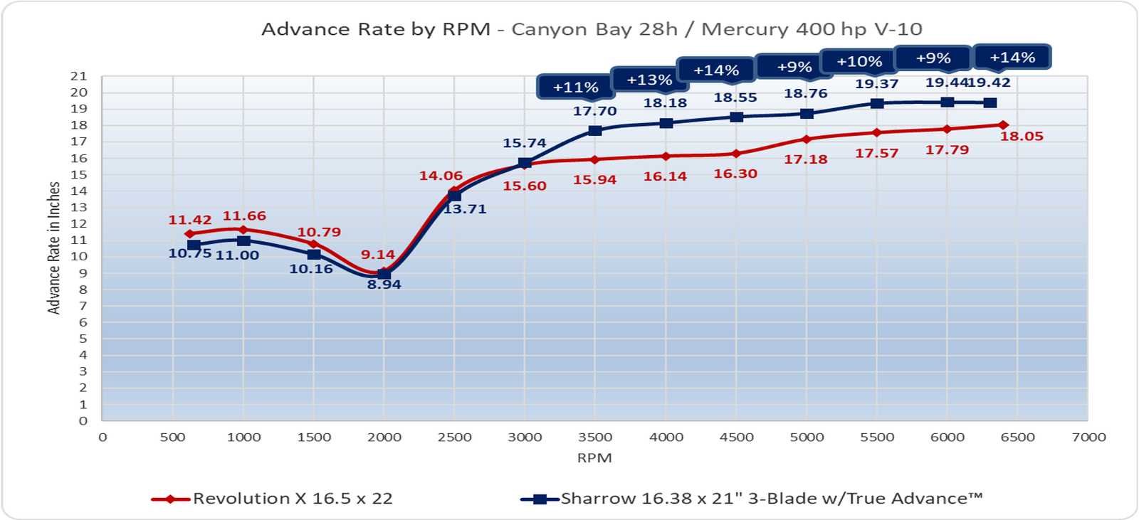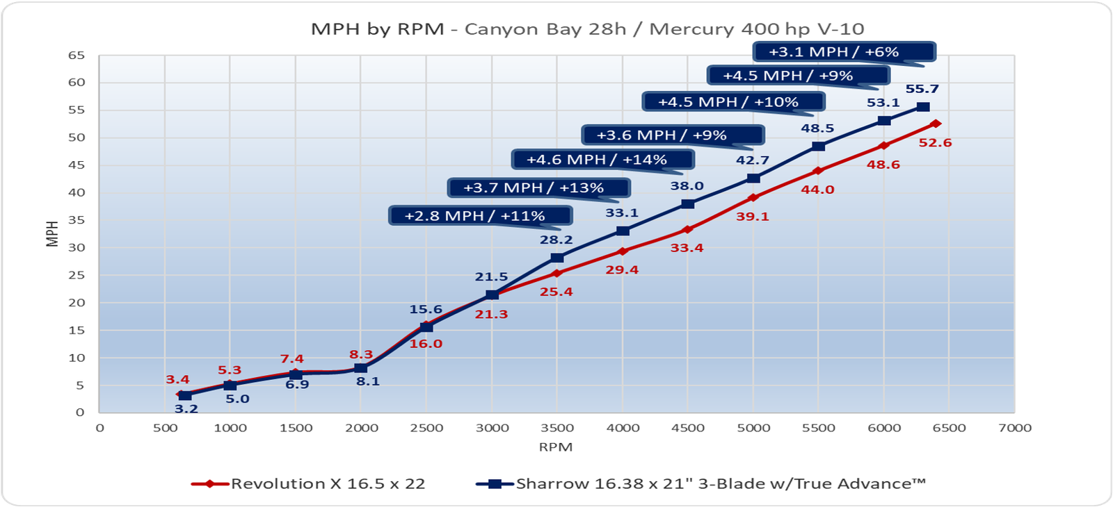 Additional performance data from Sharrow Marine’s testing in September 2024 with a 3-blade Sharrow X10 Propeller: