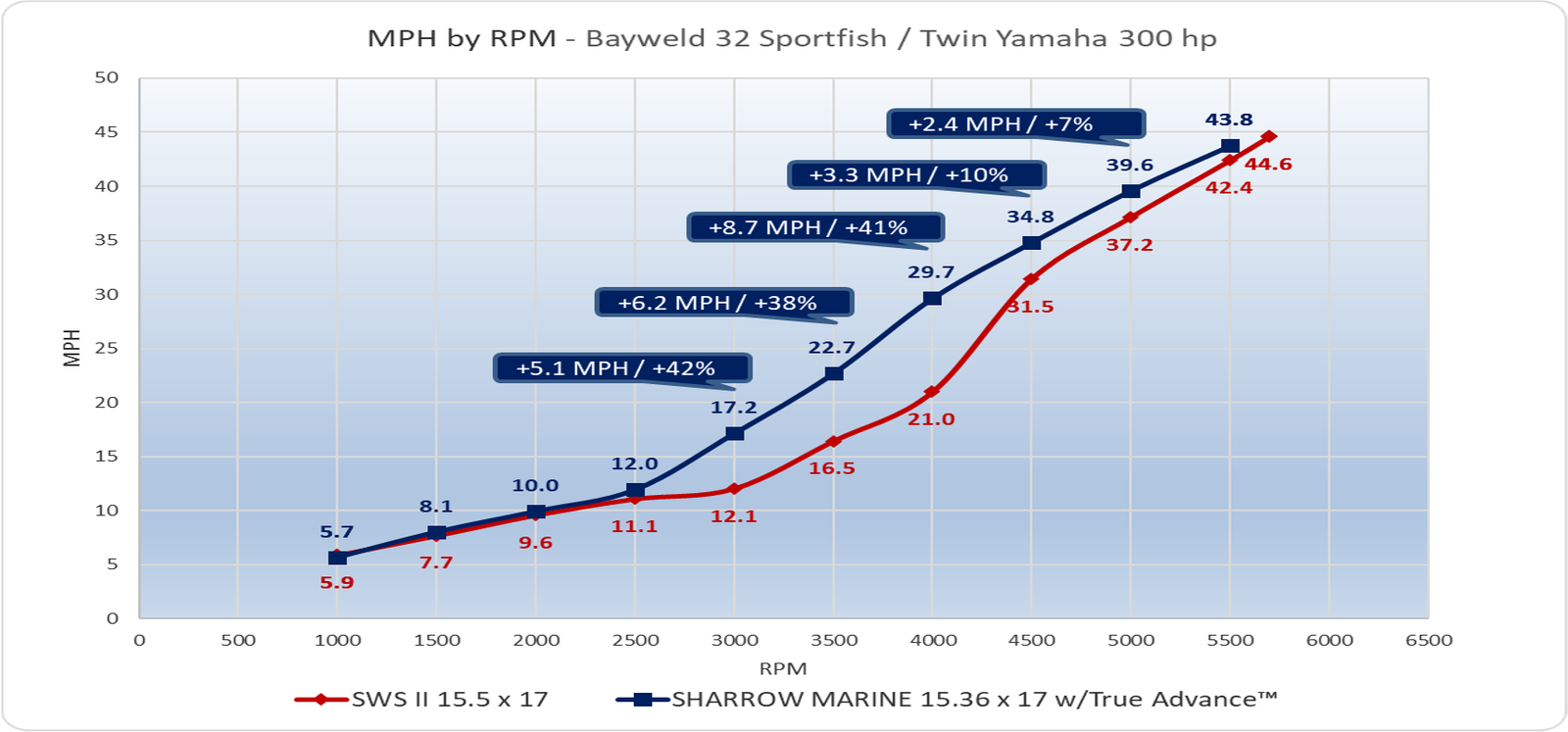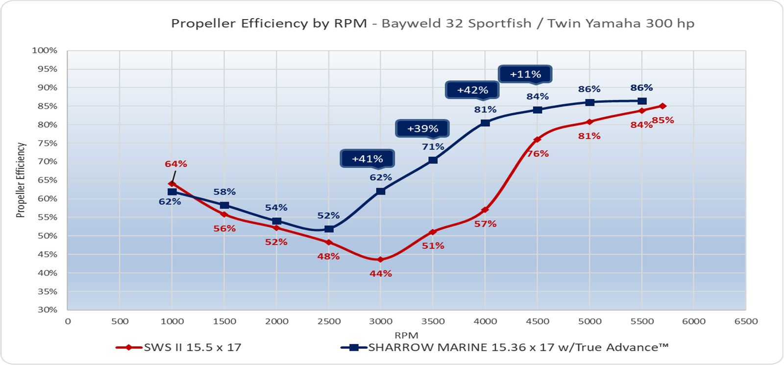 Sharrow MX™ Propellers outperform Standard Props on a Bay Weld 32 Sport Fishing boat