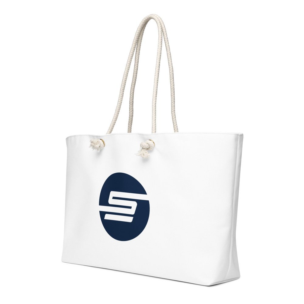 • 100% spun polyester exterior • 50% cotton, 50% polyester cream sheeting interior lining • Cream-colored cotton rope handles through metal grommets • Size: 24″ × 13″ × 5.5″ (60.9 × 33 × 14 cm)